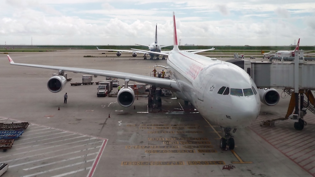 Swiss HB-JME, Airbus A340-313E, in Pudong (6.8.10)