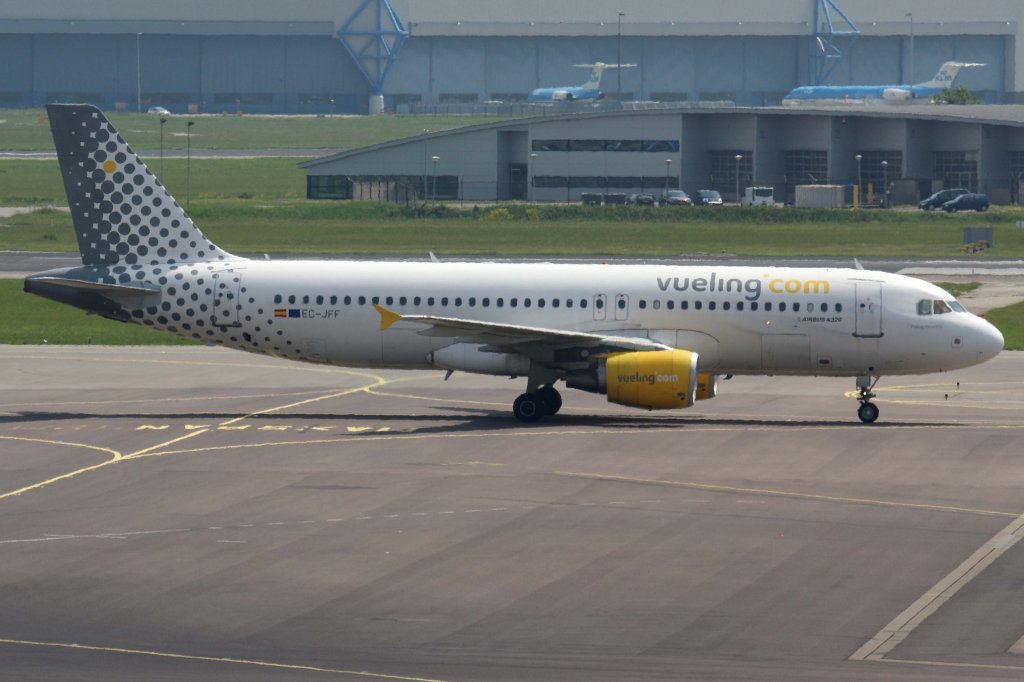 Vueling, EC-JFF "Vueling the world", Airbus, A 320-200, 25.05.2012, AMS-EHAM, Amsterdam (Schiphol), Niederlande