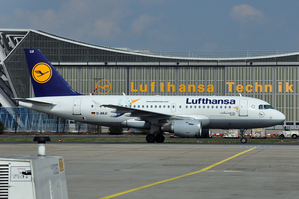 A 319-100 D-AILU "Verden" rollt an der Halle der Lufthansa Technik in FRA vorbei - 14.04.2012