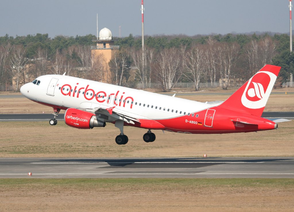 Air Berlin A 319-112 D-ABGO beim Start in Berlin-Tegel am 25.03.2012