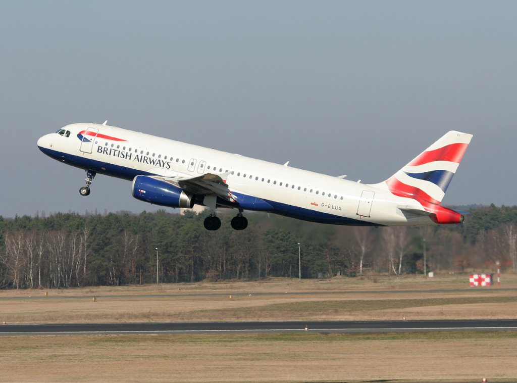 British Airways A 320-232 G-EUUX beim Start in Berlin-Tegel am 25.03.2012