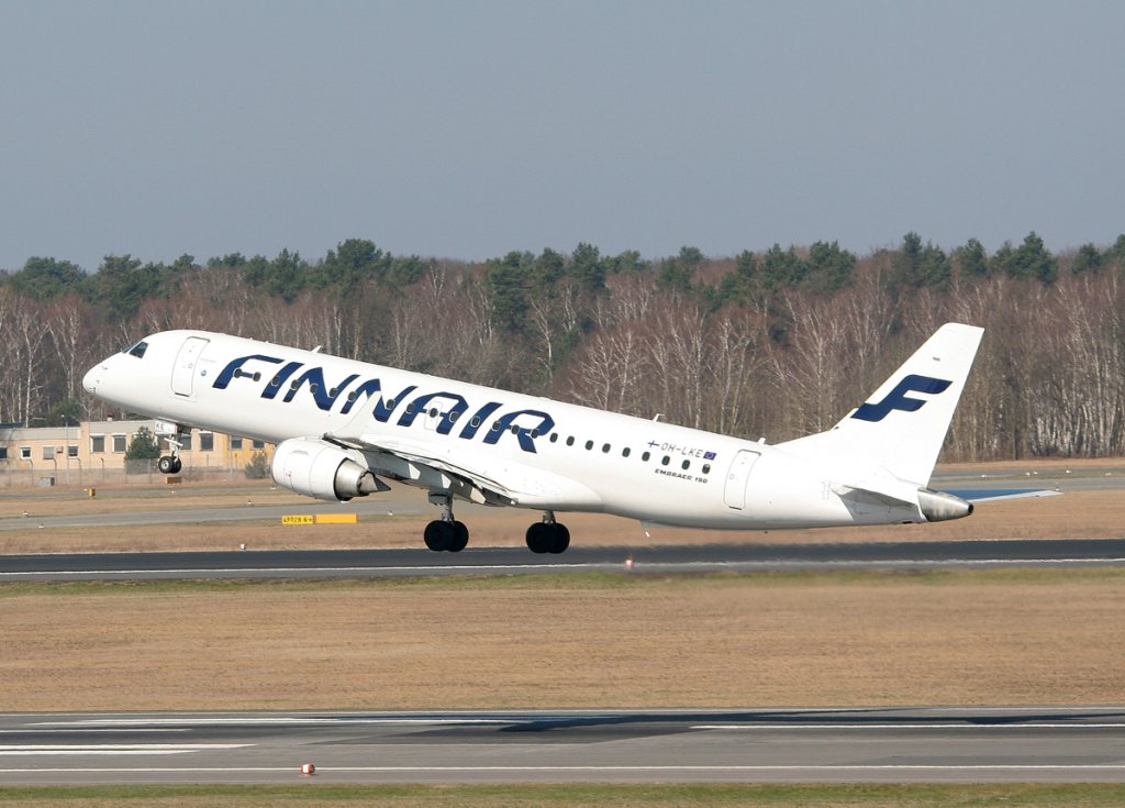 Finnair Embarer ERJ-190-100LR OH-LKE beim Start in Berlin-Tegel am 25.03.2012