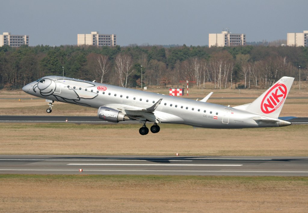 Fly Niki Embraer ERJ-190-100LR OE-IHD beim Start in Berlin-Tegel am 25.03.2012