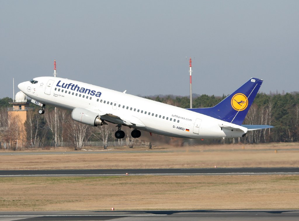 Lufthansa B 737-330 D-ABED beim Start in Berlin-Tegel am 25.03.2012