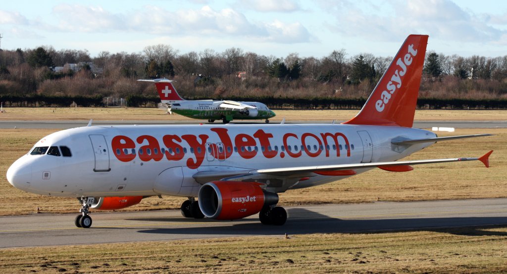 EasyJet Switzerland,HB-JYC,(c/n4785),Airbus A319-111,02.02.2013,HAM-EDDH,Hamburg,Germany(hinten Swiss,HB-IYS,Avro RJ100)