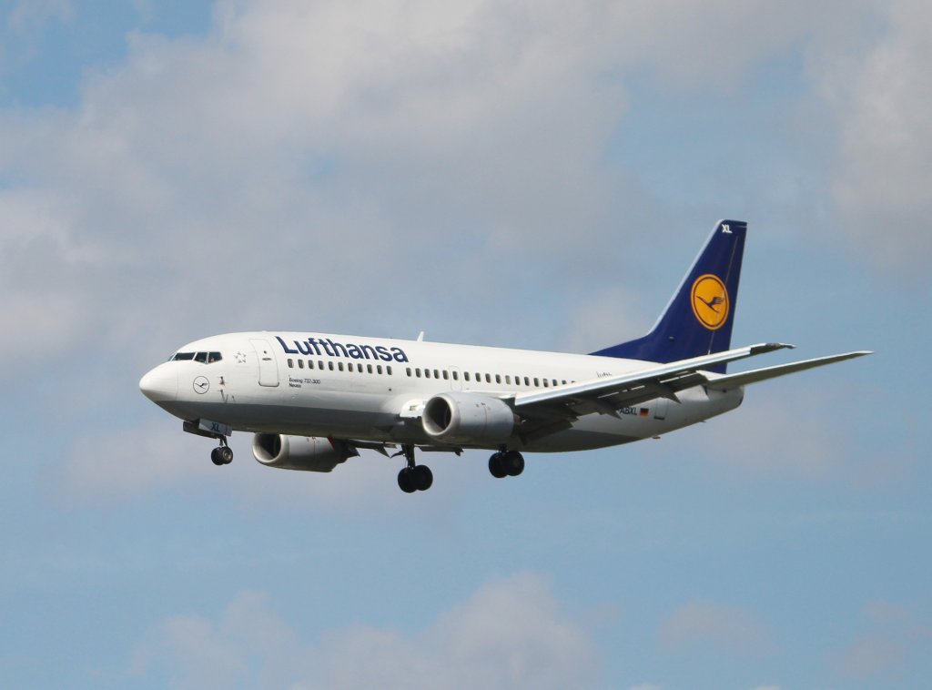 Lufthansa B 737-330 D-ABXL" Neuss" bei der Landung in Frankfurt am Main am 16.08.2012