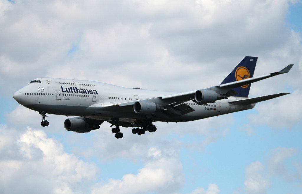 Lufthansa B 747-430 D-ABVO "Mühlheim an der Ruhr" bei der Landung in Frankfurt am Main am 16.08.2012