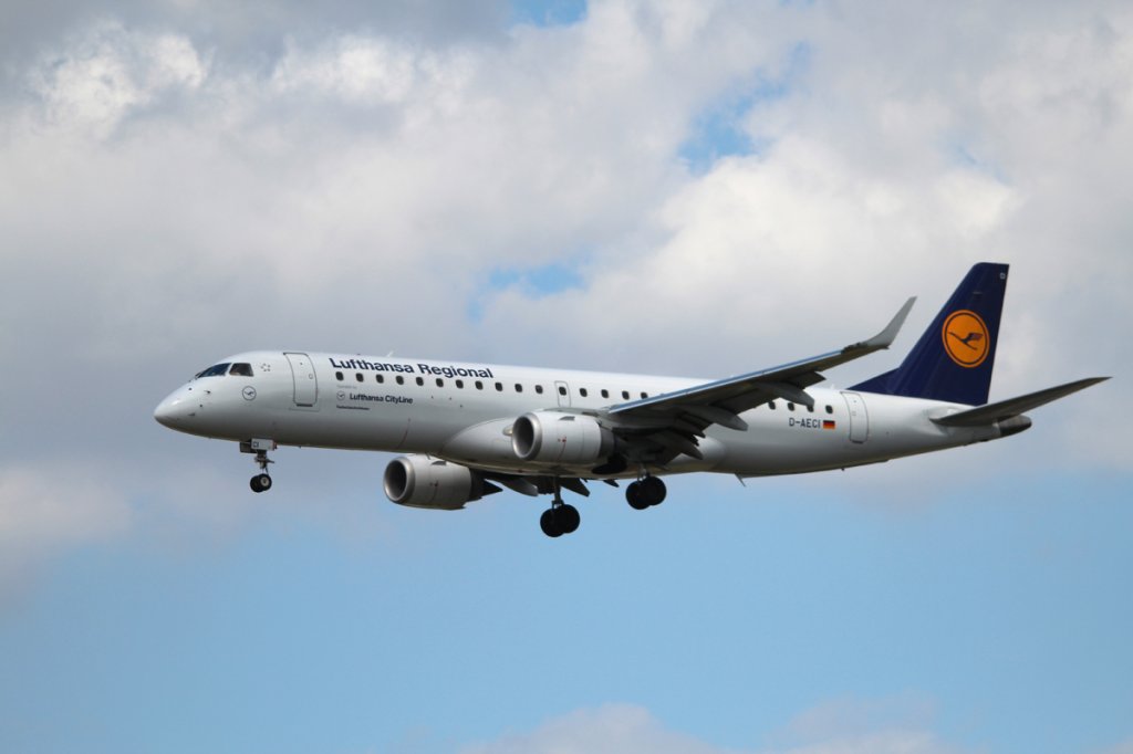 Lufthansa Regional(CityLine) Embraer ERJ-190-100LR D-AECI bei der Landung in Frankfurt am Main am 16.08.2012