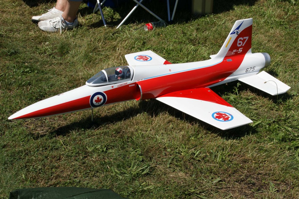 # 675, Canadair(Northtrop)"CF-5" (Canadian Air Force), 40-Jahre Jubiläums-Airmeeting des DMFV (Deutscher Modellflieger Verband) auf dem Flugplatz der Fa. "GROB AIRCRAFT" am 07.07.2012