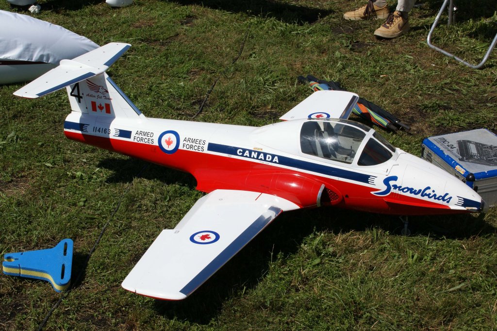 #4 114163, Canadair "CT-114 Tutor (CL-41A)" (Canada Armed Forces), 40-Jahre Jubiläums-Airmeeting des DMFV (Deutscher Modellflieger Verband) auf dem Flugplatz der Fa. "GROB AIRCRAFT" am 07.07.2012