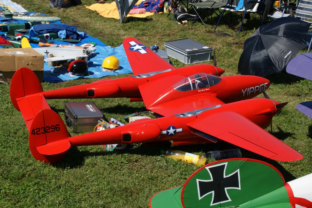423296, Lockheed "P-38 Lightning" -Yippee- (US Air Force), 40-Jahre Jubiläums-Airmeeting des DMFV (Deutscher Modellflieger Verband) auf dem Flugplatz der Fa. "GROB AIRCRAFT" am 07.07.2012