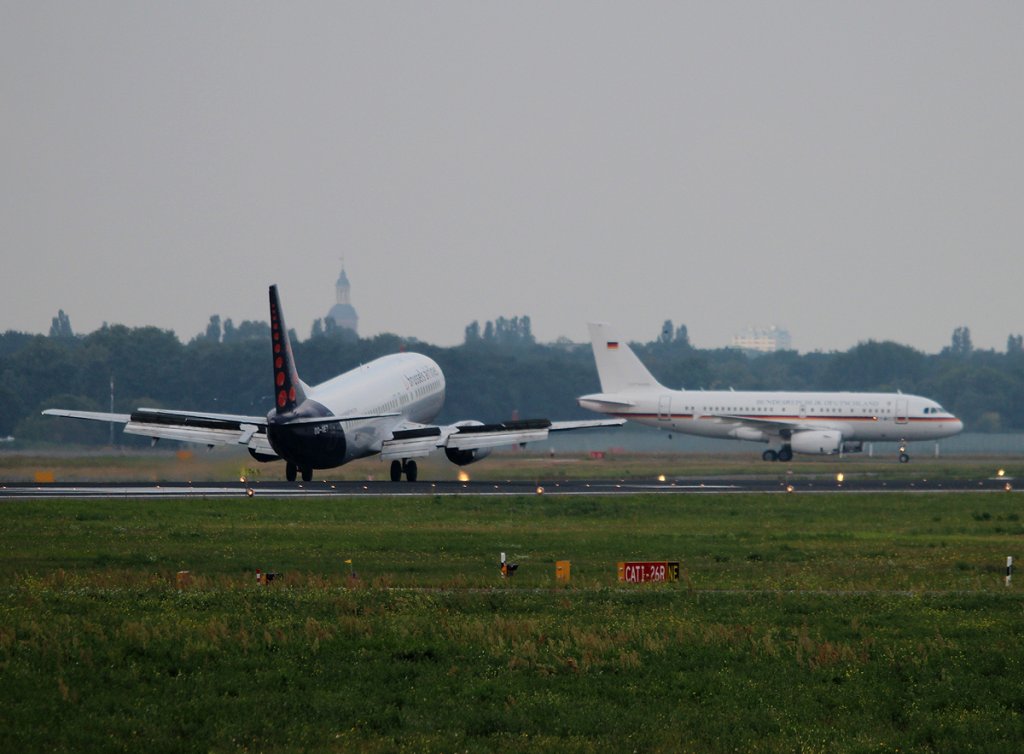Brussels Airlines B 737-4Q8 OO-VET gemeinsam mit Germany Air Force A 319-133XCJ 15+02 am 22.08.2012 in Berlin-Tegel