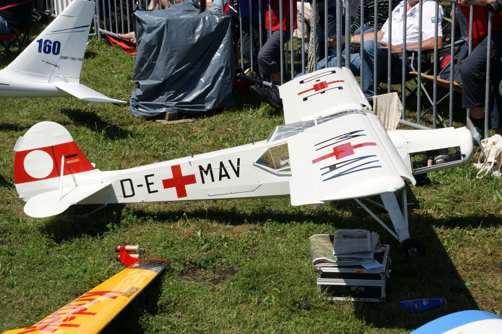 D-EMAV, Mraz K-65 (Fieseler Fi-156 D-2 Storch) , 40-Jahre Jubiläums-Airmeeting des DMFV (Deutscher Modellflieger Verband) auf dem Flugplatz der Fa. "GROB AIRCRAFT" am 07.07.2012