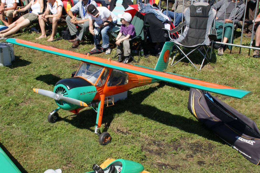 D-EMCZ, Ivchenko "AI-14 RA Wilga", 40-Jahre Jubiläums-Airmeeting des DMFV (Deutscher Modellflieger Verband) auf dem Flugplatz der Fa. "GROB AIRCRAFT" am 07.07.2012