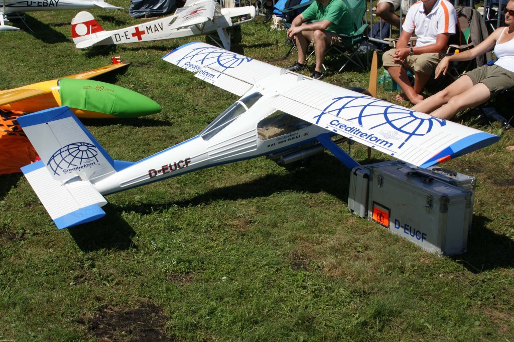 D-EUCF, PZL-104 Wilga 35, 40-Jahre Jubiläums-Airmeeting des DMFV (Deutscher Modellflieger Verband) auf dem Flugplatz der Fa. "GROB AIRCRAFT" am 07.07.2012