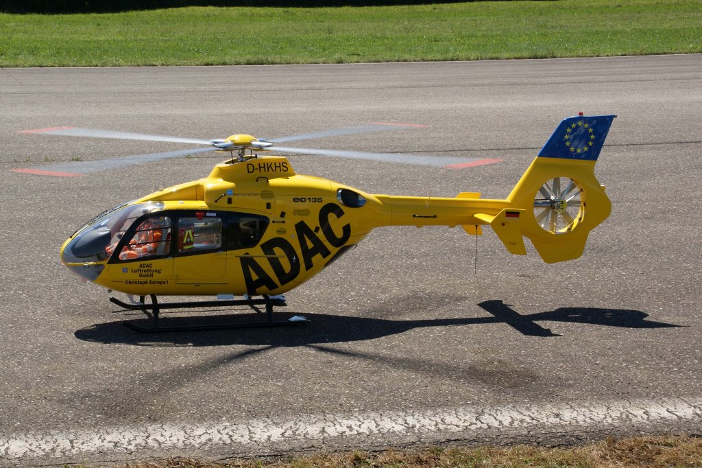 D-HKHS, Eurocopter "EC-135" (ADAC "Christoph Europa 1"), 40-Jahre Jubiläums-Airmeeting des DMFV (Deutscher Modellflieger Verband) auf dem Flugplatz der Fa. "GROB AIRCRAFT" am 07.07.2012