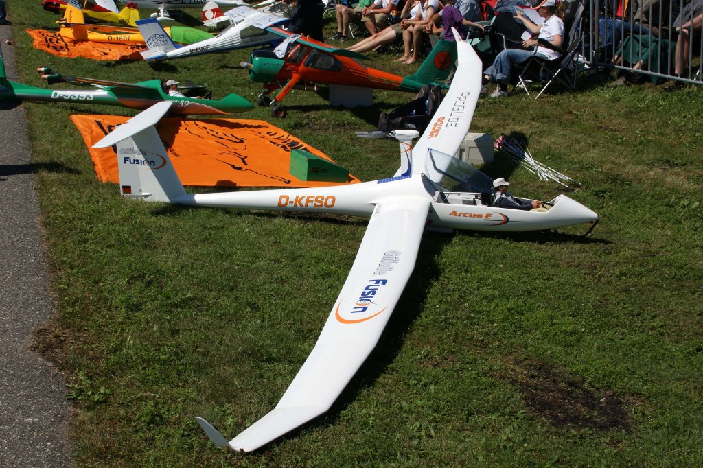 D-KFSO, Schempp-Hirth "Arcus E", 40-Jahre Jubiläums-Airmeeting des DMFV (Deutscher Modellflieger Verband) auf dem Flugplatz der Fa. "GROB AIRCRAFT" am 07.07.2012