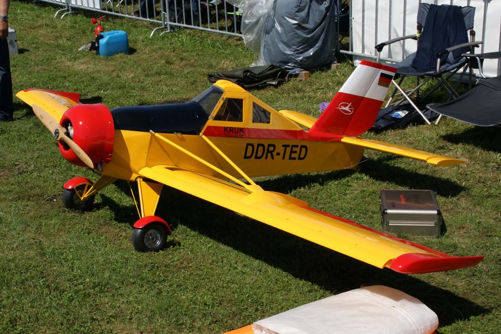 DDR-TED, WSK "PZL-106BR Kruk", 40-Jahre Jubiläums-Airmeeting des DMFV (Deutscher Modellflieger Verband) auf dem Flugplatz der Fa. "GROB AIRCRAFT" am 07.07.2012