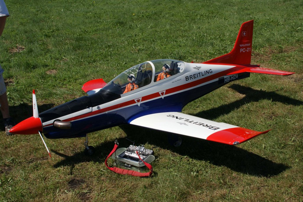 HB-HZA, Pilatus "PC-21" (Breitling-Design), 40-Jahre Jubiläums-Airmeeting des DMFV (Deutscher Modellflieger Verband) auf dem Flugplatz der Fa. "GROB AIRCRAFT" am 07.07.2012