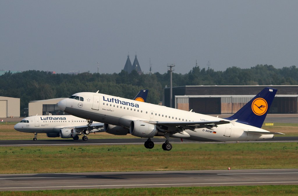 Lufthansa A 319-112 D-AKNH beim Start, im Hintergrund Lufthansa A 319-114 D-AIBF "Sinsheim" nach der Landung in Berlin-Tegel am 22.08.2012