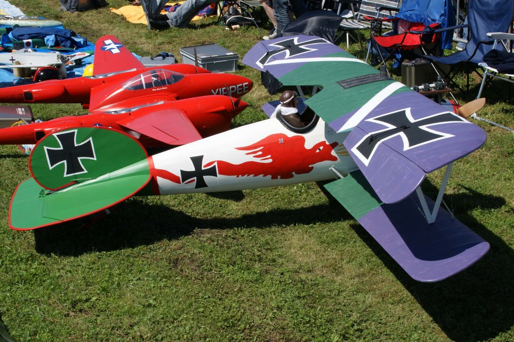ohne, Fokker D VII, 40-Jahre Jubiläums-Airmeeting des DMFV (Deutscher Modellflieger Verband) auf dem Flugplatz der Fa. "GROB AIRCRAFT" am 07.07.2012