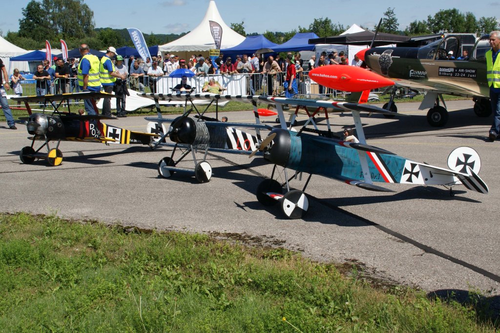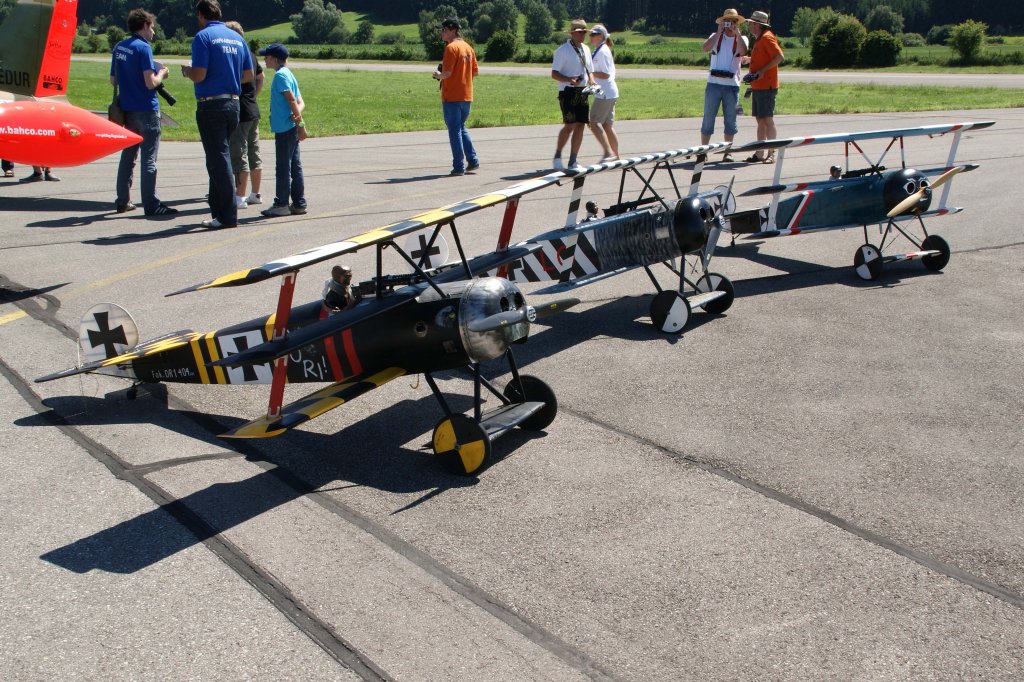 ohne, 3 x Fokker Dr.I, 40-Jahre Jubiläums-Airmeeting des DMFV (Deutscher Modellflieger Verband) auf dem Flugplatz der Fa. "GROB AIRCRAFT" am 07.07.2012