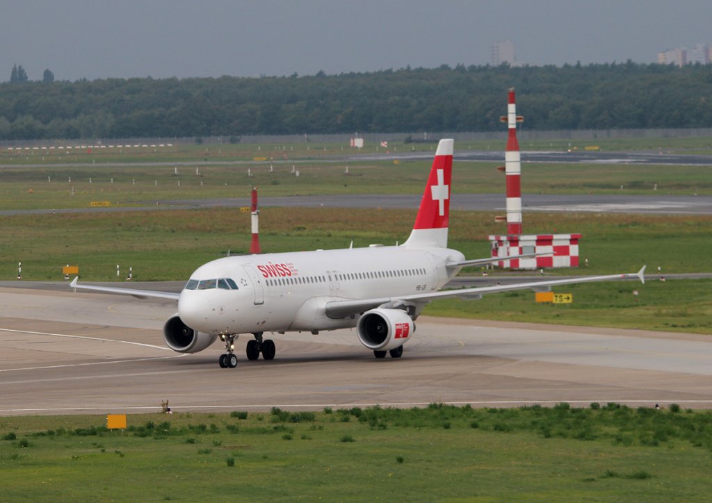 Swiss A 320-214 HB-IJR bei der Ankunft in Berlin-Tegel am 22.08.2012