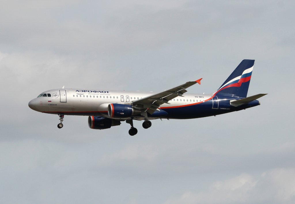 Aeroflot A 320-214 VQ-BKS bei der Landung in Frankfurt am Main am 16.08.2012