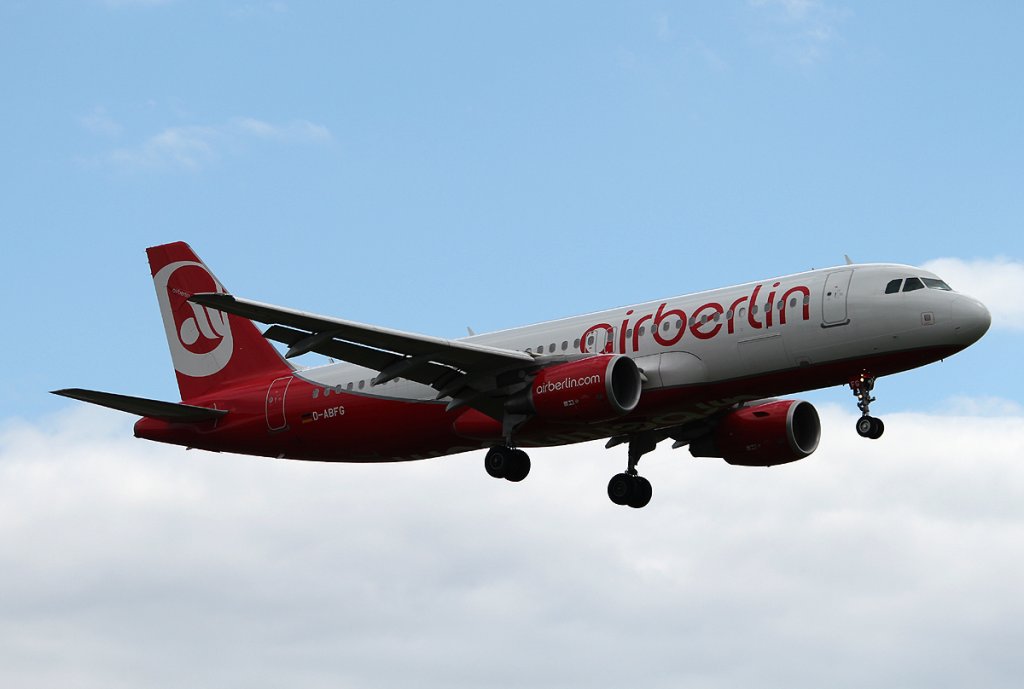 Air Berlin A 320-214 D-ABFG bei der Landung in Berlin-Tegel am 21.07.2012