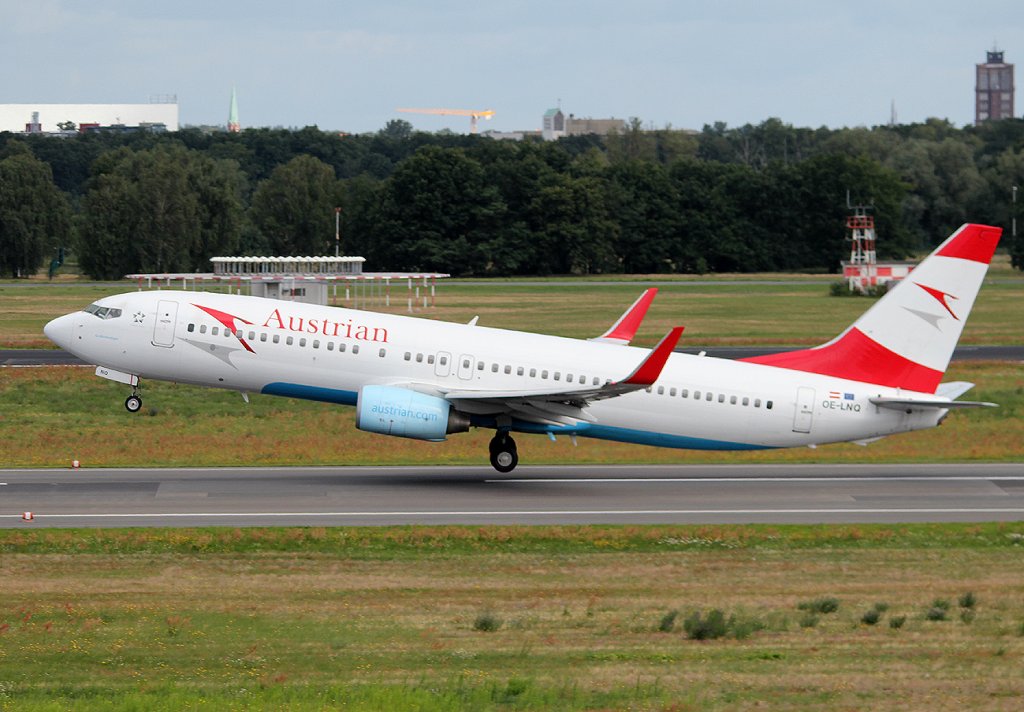 Austrian Airlines B 737-8Z9 OE-LNQ beim Start in Berlin-Tegel am 21.07.2012