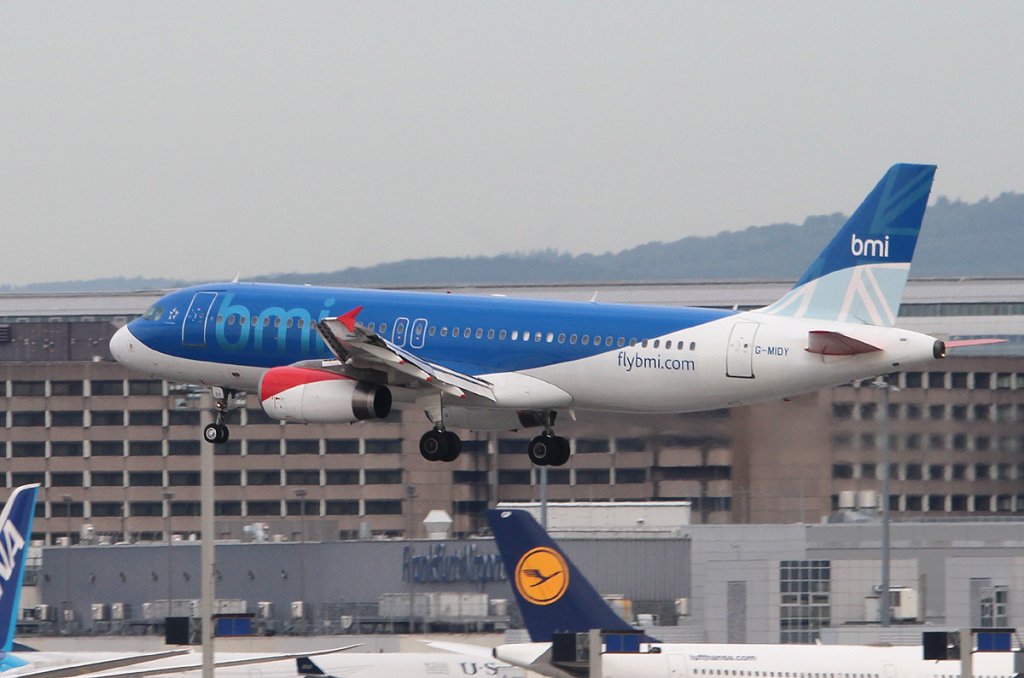 BMI A 320-232 G-MIDS bei der Landung in Frankfurt am Main am 16.08.2012