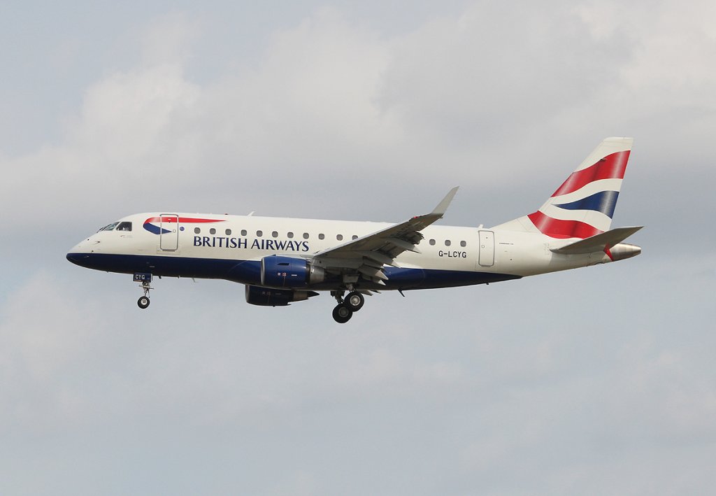 British Airways (City Flyer) Embraer ERJ-170-100STD G-LCYG bei der Landung in Frankfurt am Main am 16.08.2012