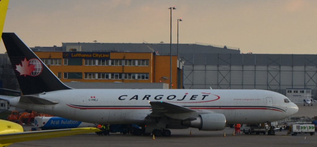 Cargojet Airways, C-FMCJ, Boeing 767-200 ERF, der kanadischen Frachtfluggeselschaft, abgestellt am 10.01.2013 auf dem Flughafen Köln/Bonn.