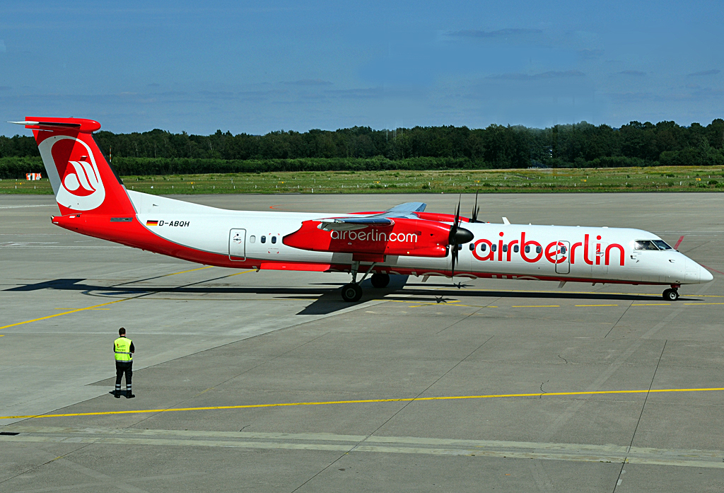DHC-8-402Q Dash 8 D-ABQH der Air Berlin verläßt Parkposition in CGN - 12.08.2012