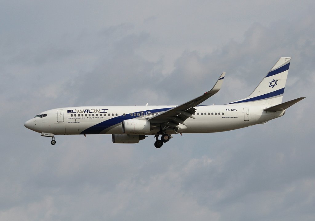EL AL B 737-86Q 4X-EKL bei der Landung in Frankfurt am Main am 16.08.2012