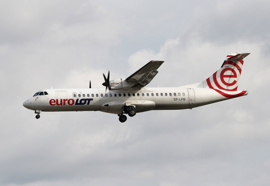 EuroLot ATR-72-202 SP-LFB bei der Landung in Frankfurt am Main am 16.08.2012