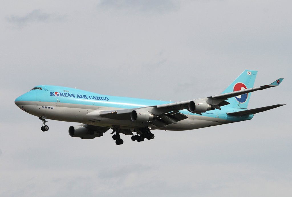Korean Air Cargo B 747-4B5(EQ/F) HL7438 bei der Landung in Frankfurt am Main am 16.08.2012