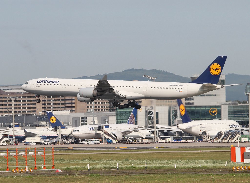Lufthansa A 340-642 D-AIHC "Essen" bei der Landung in Frankfurt am Main am 16.08.2012