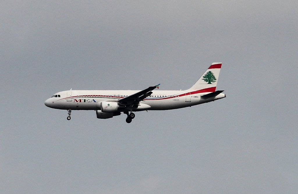 Middle East Airlines MEA A 320-214 F-OMRA bei der Landung in Frankfurt am Main am 16.08.2012