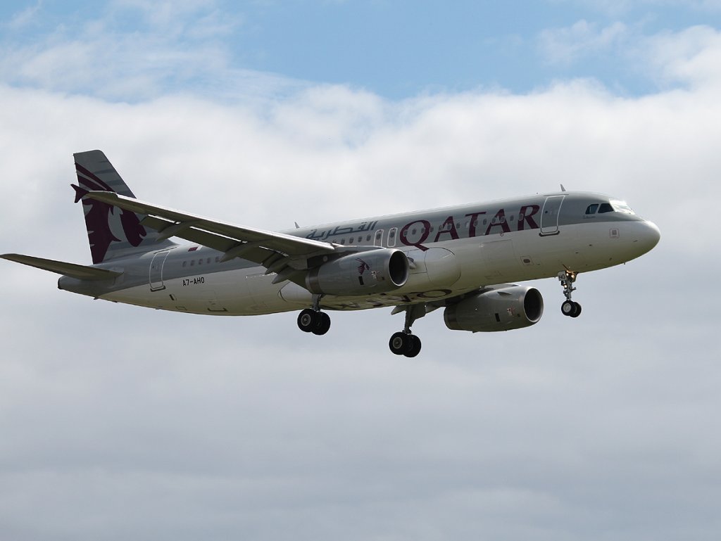 Qatar Airways A 320-232 A7-AHO bei der Landung in Berlin-Tegel am 21.07.2012