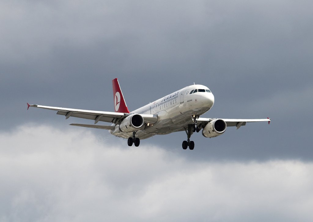 Turkish Airlines A 320-232 TC-JPS bei der Landung in Berlin-Tegel am 21.07.2012