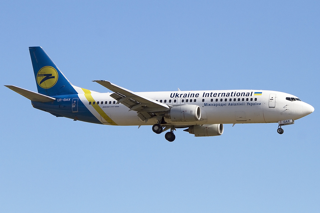 Ukraine International Airlines B 737-55D UR-GAZ bei der Landung in Berlin-Tegel am 21.07.2012