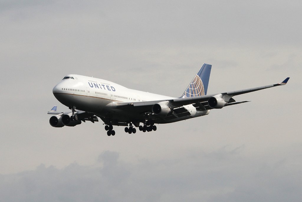 United Airlines B 747-422 N117UA bei der Landung in Frankfurt am Main am 16.08.2012