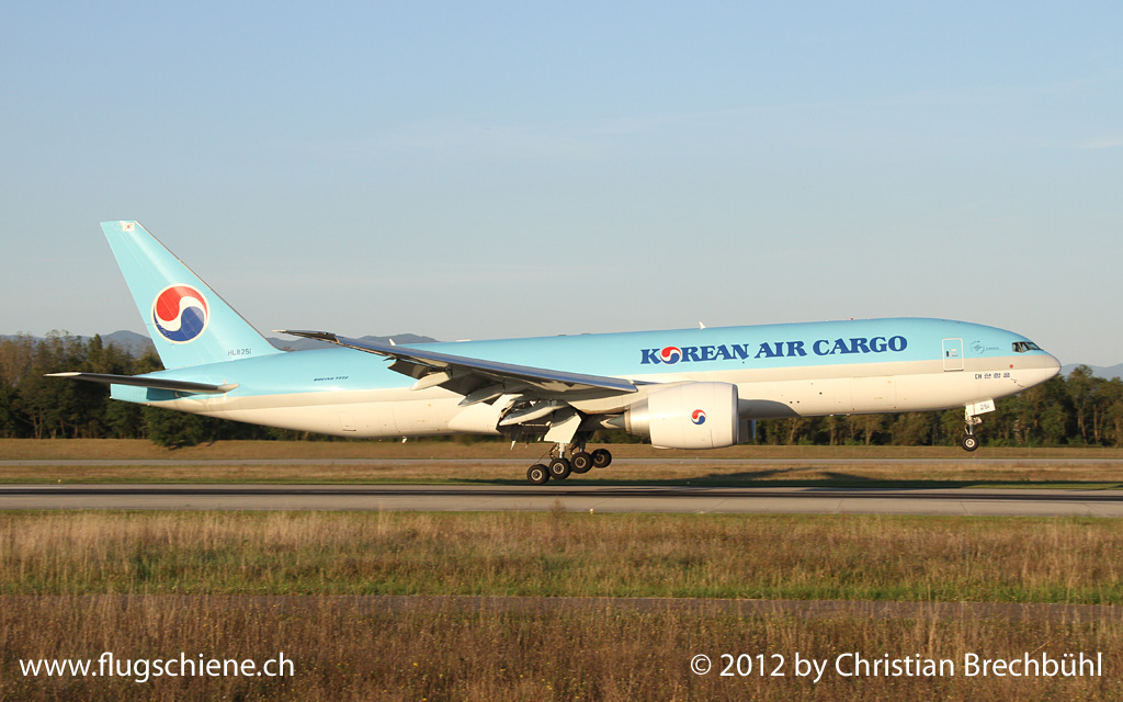 Vorbei sind die Jumbo Frachter Zeiten in Basel, da die KAL Cargo in dieser Seasion auf Boeing B777- 200F umgestellt hat. Hier die HL8251 bei der Landung auf dem Euroairport am 16. September 2012.