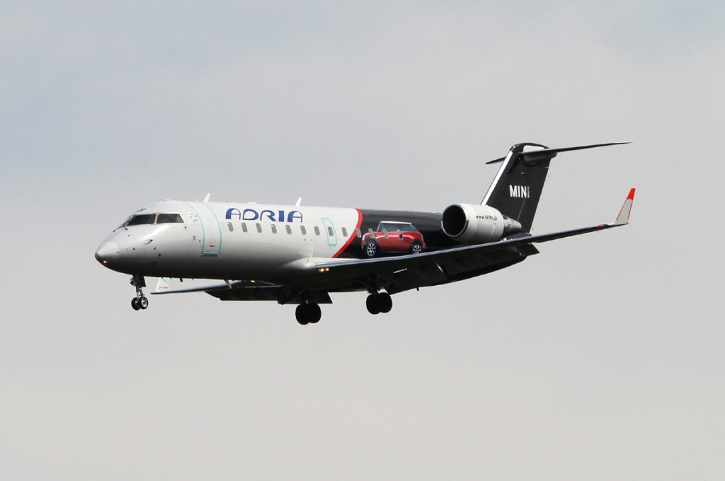 Adria Airways Canadair Regjet CRJ200LR S5-AAF bei der Landung in Frankfurt am Main am 16.08.2012