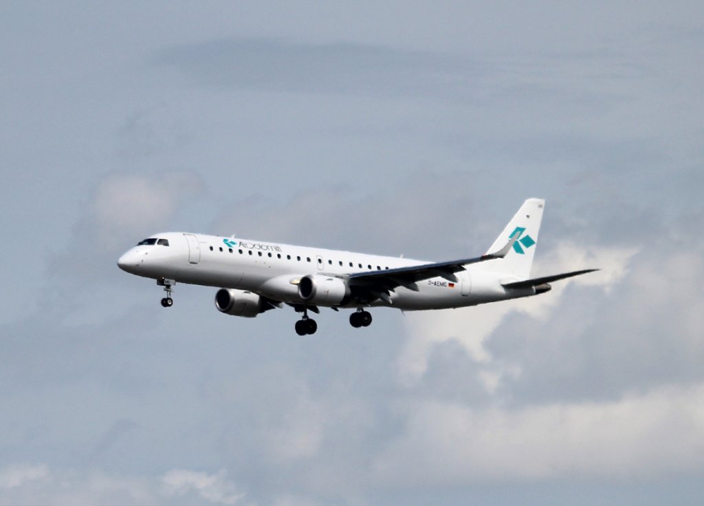Air Dolomiti Embraer ERJ-190-100LR D-AEMG bei der Landung in Frankfurt am Main am 16.08.2012