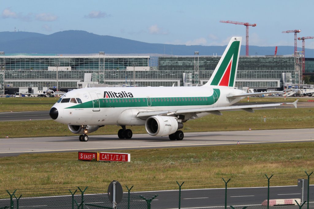 Alitalia A 319-112 EI-IML bei der Landung in Frankfurt am Main am 16.08.2012