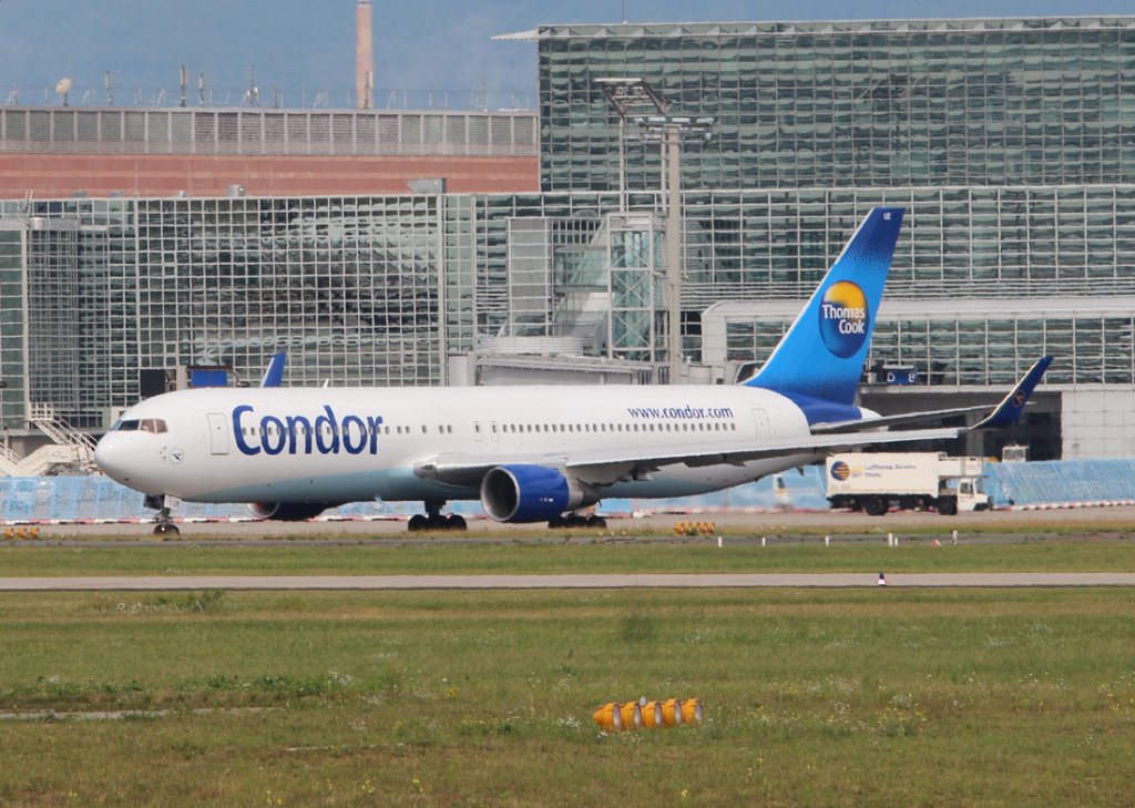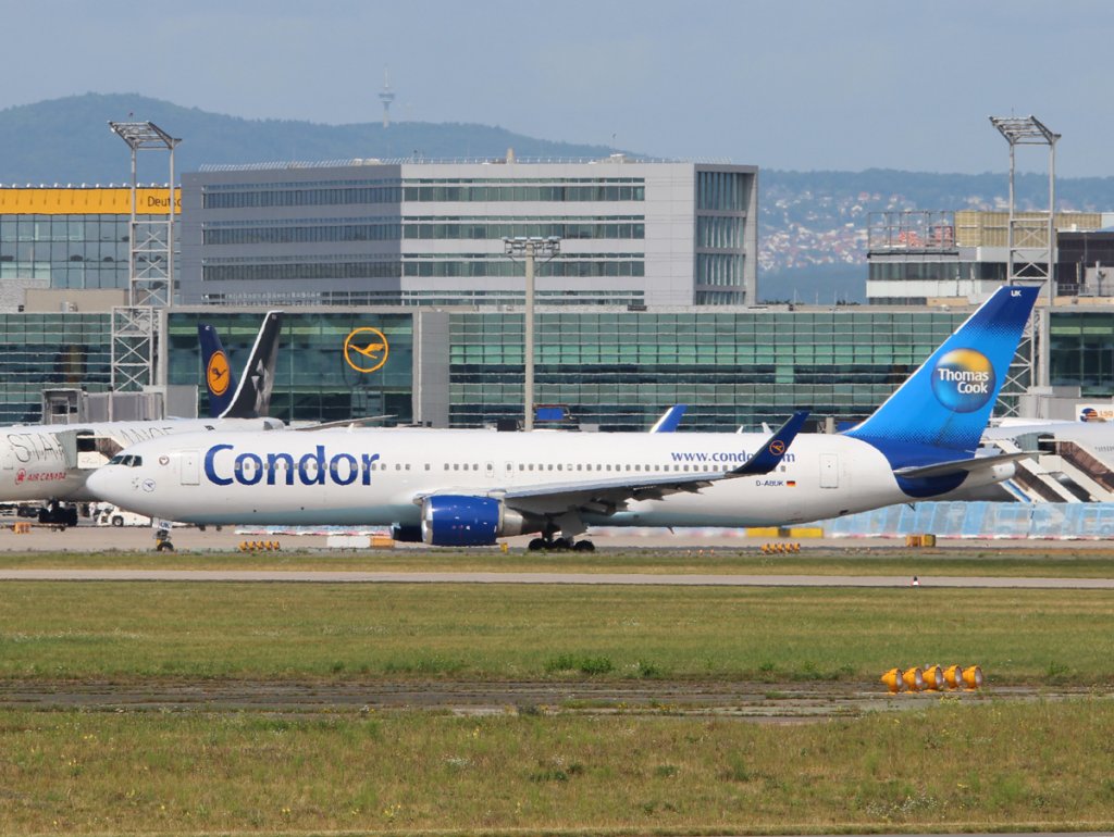 Condor B 767-330(ER) D-ABUI bei der Landung in Frankfurt am Main am 16.08.2012