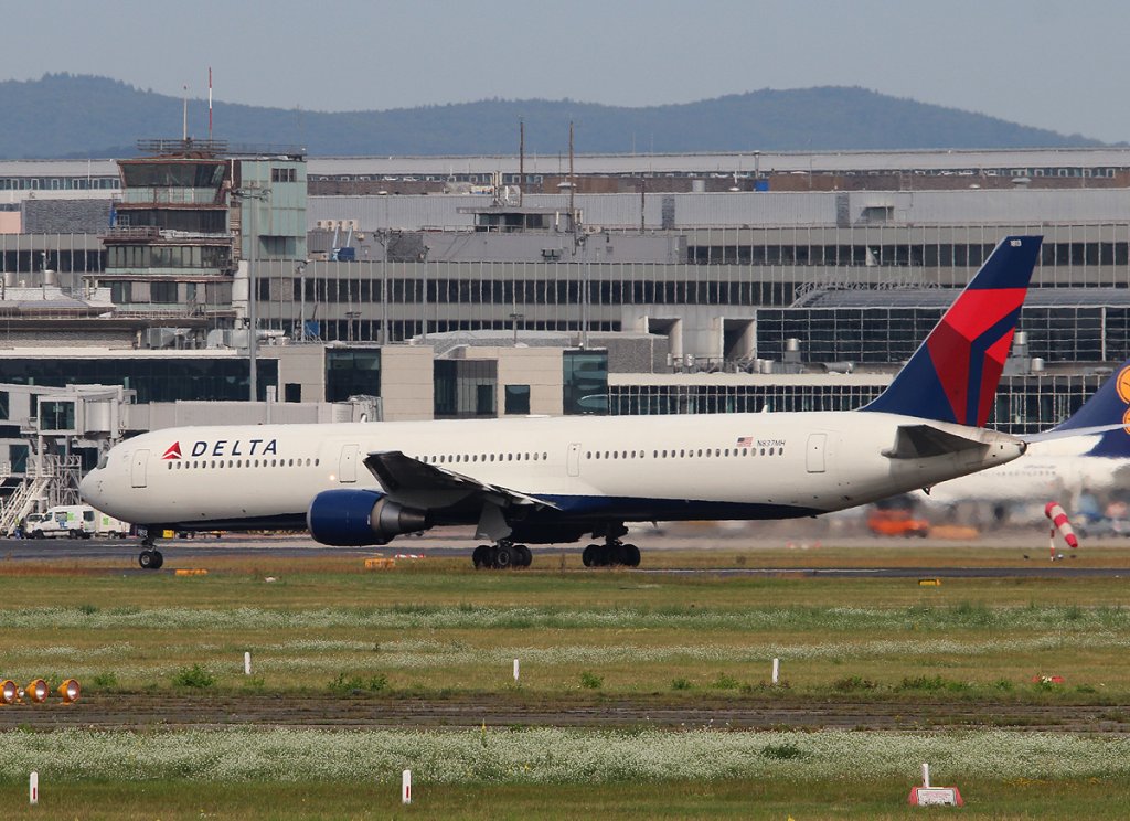 Delta Airlines B 767-332(ER) N1609 bei der Landung in Frankfurt am Main am 16.08.2012