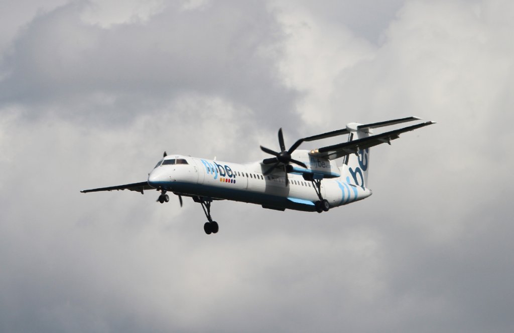 Flybe De Havilland Canada DHC-8-402Q G-ECOF bei der Landung in Frankfurt am Main am 16.08.2012